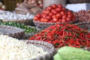 Yesterday our tour leader announced that we would all take a cyclo tour around the Old Quarter of Hanoi. The Old Quarter is a bustling section of the city with outdoor markets, street vendors, restaurants and stores. It is rumored to be the most densely populated area in Asia at .8 square meters per person. Try to imagine living in a space about the size of your couch and you get the idea.