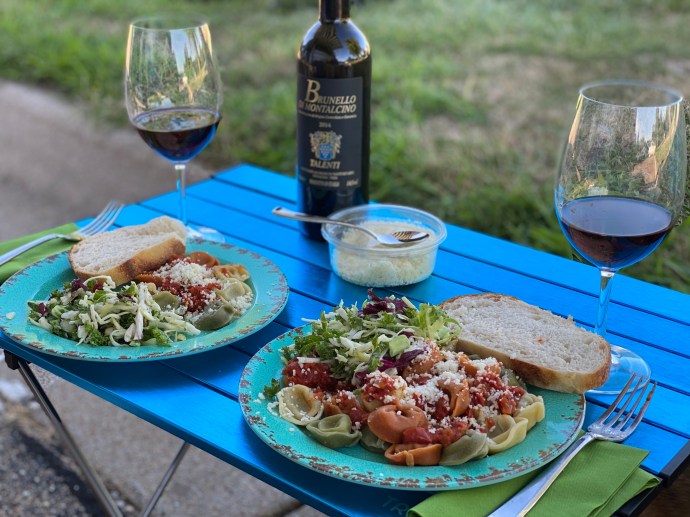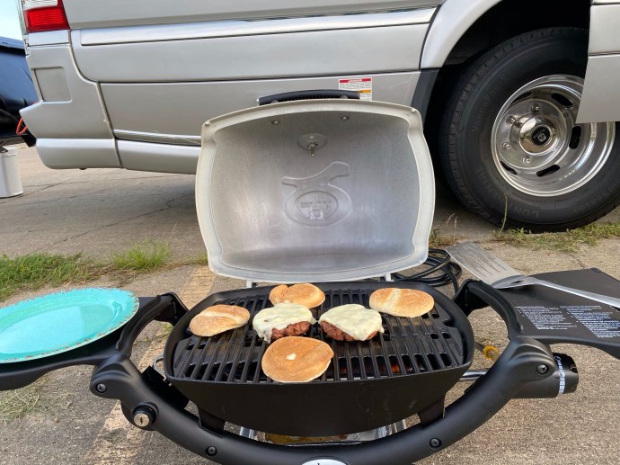 Brad was in heaven grilling out dinner at the farm. Of course, he bought a small Weber grill and modified it to operate off of the RV’s propane system. We ate Beyond Burgers, drank a nice Chianti, and were joined by some deer and a few geese. All socially distanced, of course.