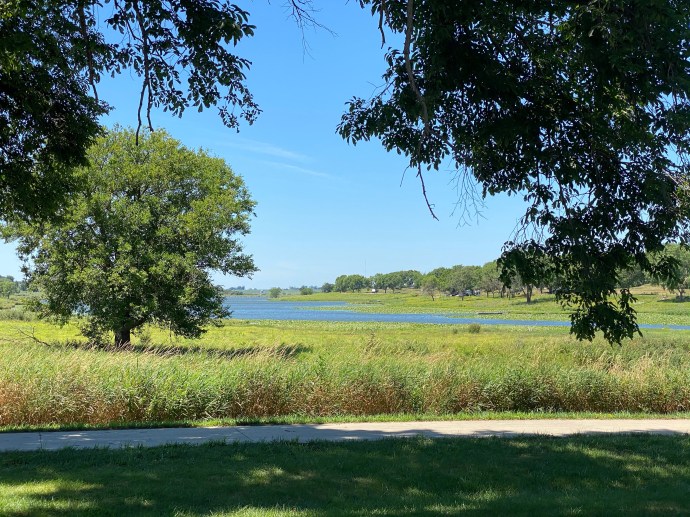 Last night, we arrived at our destination — Thornridge Golf Course in Milford, Nebraska. Milford is a town of 2000 people outside of Lincoln, Nebraska. The Winona Rider looked out at a beautiful golf course and a community swimming pool. There was a gorgeous little park down the street that we let the dogs run around. It was all quite delightful actually.