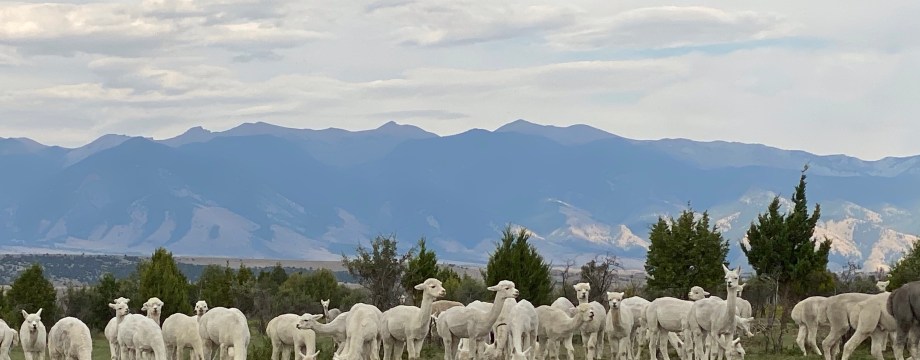 After our hike we hopped back in the Winona Rider and drove to Sentinel Ranch near Bozeman. This unique Harvest Host stop is an alpaca ranch. Yes, hundreds of alpacas. And, we are parked overnight in what they call the back 20. That’s 20 acres at the back of the ranch with lots and lots of alpacas. Alpacas are much friendlier than llamas, although we understand they will spit if in distress. But, then, I have a few friends that will do that too.
