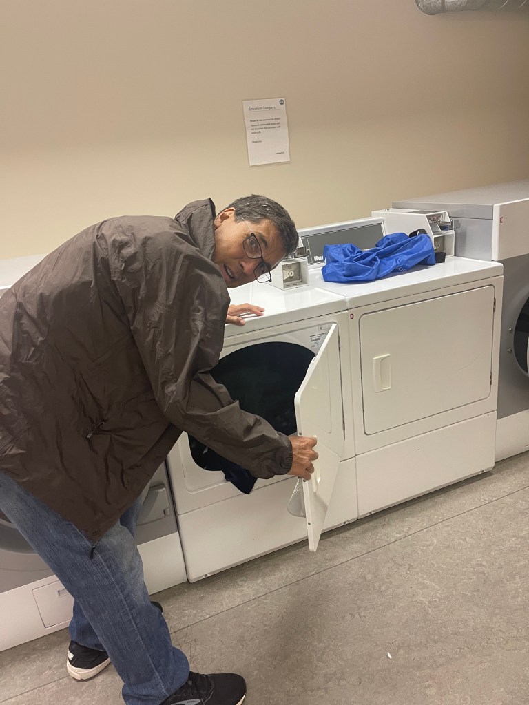 We do almost everything together in the Winona Rider. We planned the trip together, we did the menu planning, we organized the van, and we packed our things together. Each day on the trip we have to make the bed, do the dishes, make the meals, do the grocery shopping, and do the laundry together. I think you get my point. We each have our own jobs even in the Rider but we have to work together and do a dance at times around each other to make it all work in such a small space. We even write the blog together. I often sit down and just put down all of my ideas with very little attention to grammar or facts in the evening. I am a bit of a night owl so that works best for me. Brad, on the other hand, likes to get up earlier than me so he looks at my draft and “cleans it up” as we like to call it. It’s a team effort and it works!